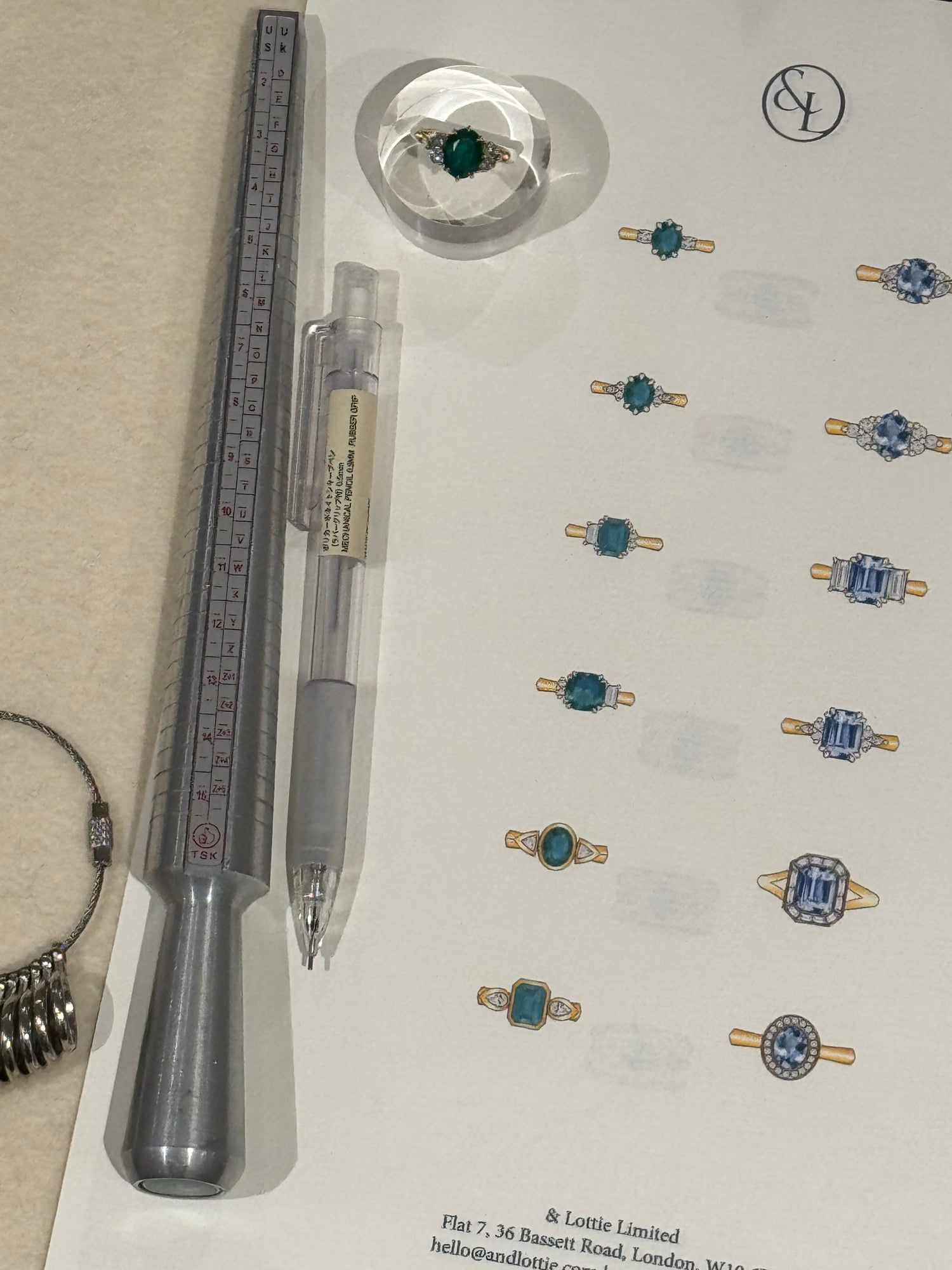 Once the concept is in place, Lottie will bring your ideas to life with initial design sketches, guiding you through the details of materials, gemstones, and craftsmanship techniques. If your design includes a gemstone, she’ll personally source a selection for you to choose from, ensuring it perfectly suits your vision. You’ll also receive a clear breakdown of timeframes and pricing to keep everything within budget. Once the design is finalised, Lottie will create detailed to-scale drawings using Illustrator or CAD. A 50% deposit is required at this stage to commence production.