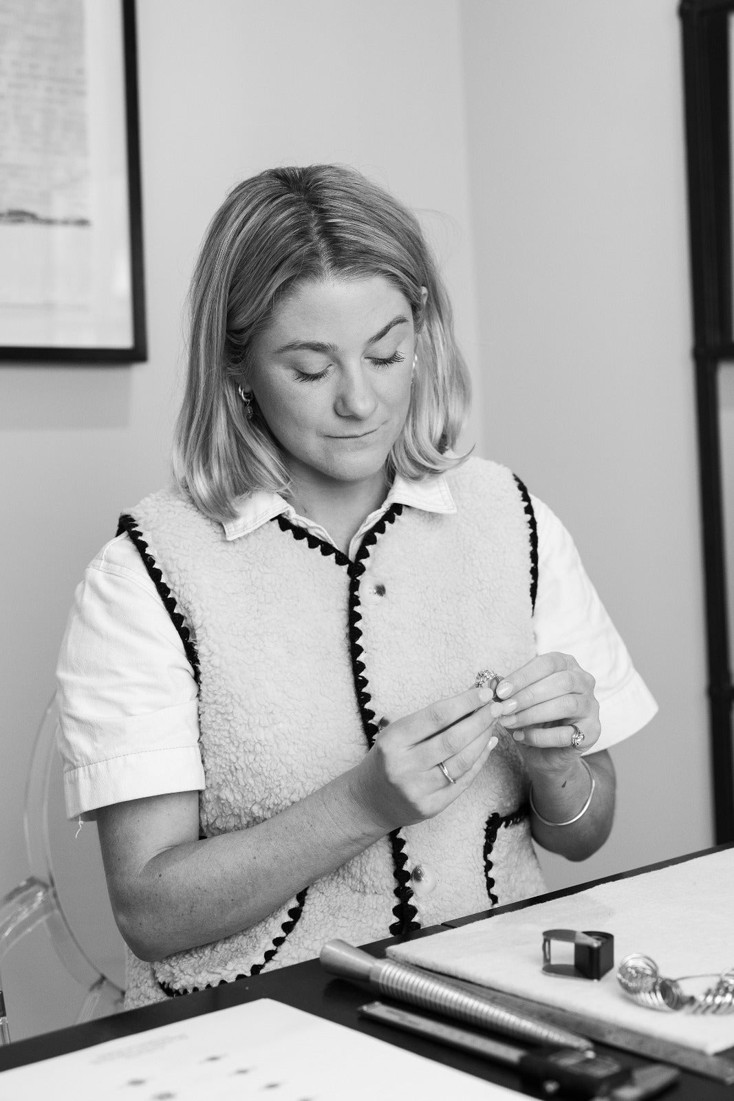 Lottie specialises in creating organic, modern jewellery and excels at transforming old, often neglected pieces into contemporary designs that breathe new life and relevance for her clients. Her work is a reflection of her deep connection to both the past and the present, blending timeless elegance with modern sensibilities to create pieces that are as meaningful as they are beautiful.